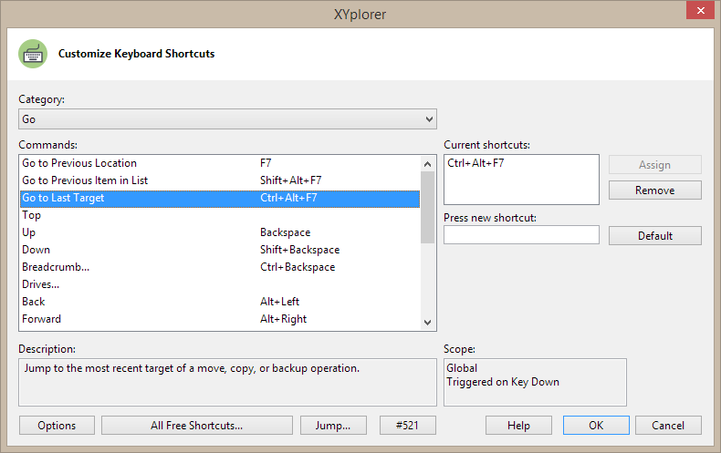 个性化快捷键是最大化工作效率的关键。在 XYplorer 中,您可以自由且轻松地将数百种组合键分配给数百个功能,包括您自己的自定义功能和脚本。XYplorer 能做的几乎一切,您都可以用一个自选的按键来完成。