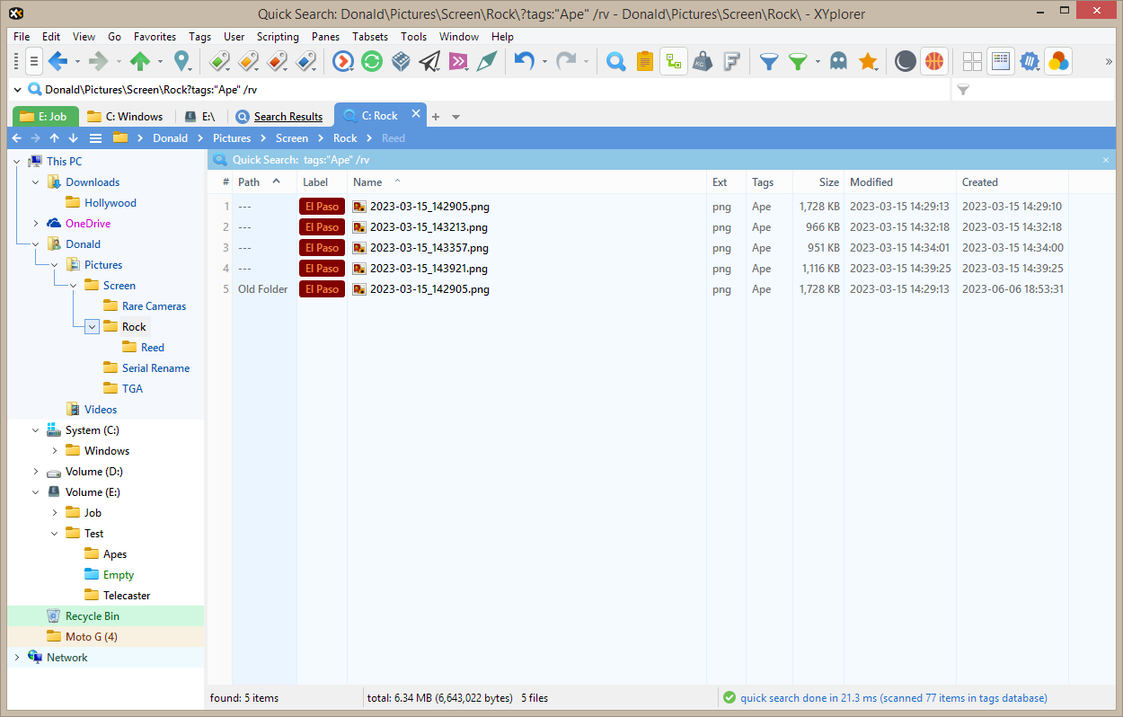 - 使用标签选项卡搜索标记、标签和备注(XYplorer 10.90 起)