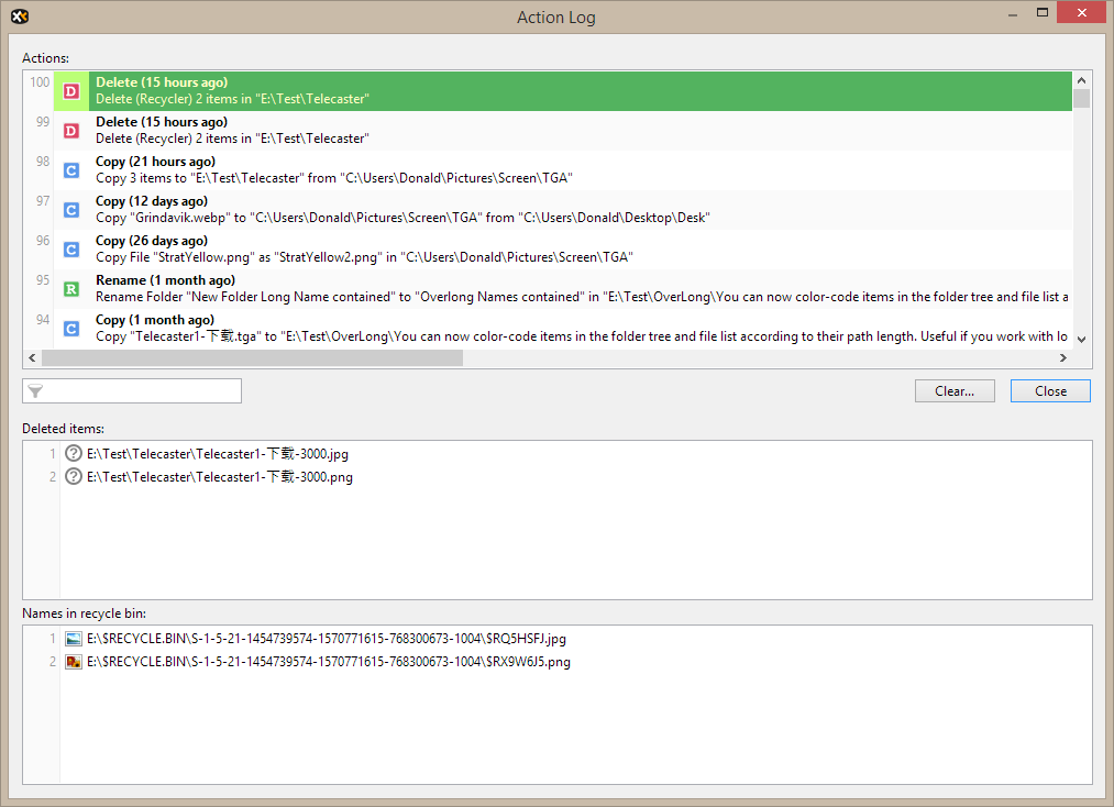 XYplorer 为移动、复制、重命名、删除和新建等文件操作提供多级撤销/重做功能。最多记录 256 个用户操作,可在任何时候撤销。操作甚至在会话之间保留,所以您今天就能修复昨天犯的错误——只需一次点击。